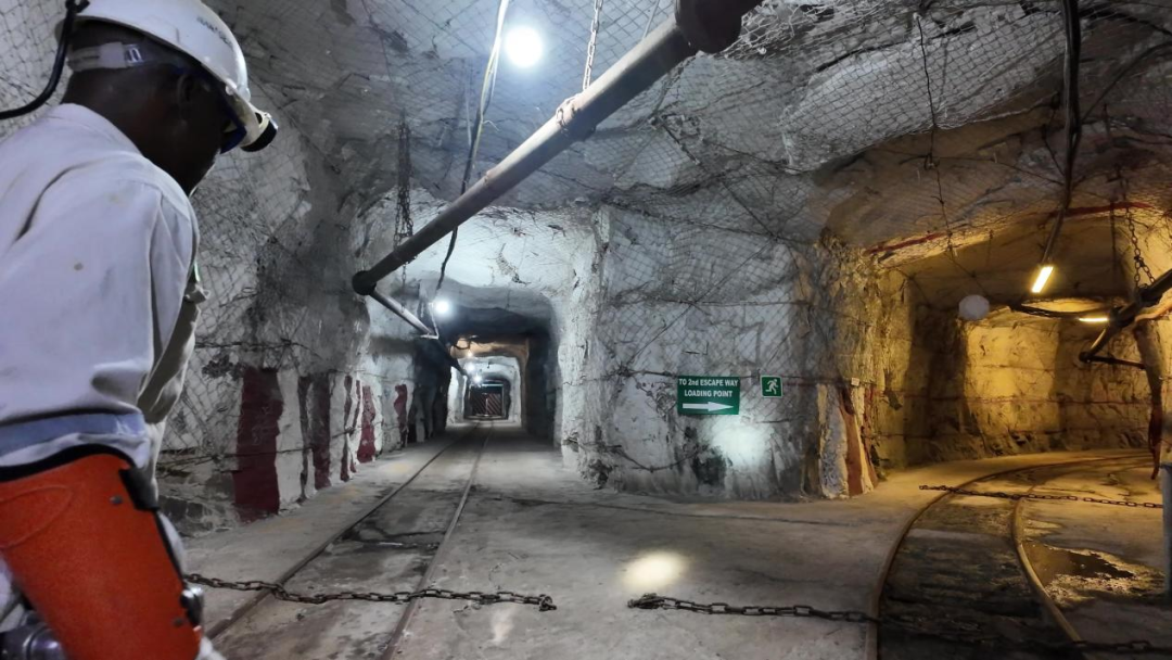 地下,兩千余名礦工在蜿蜒數(shù)十公里的礦道內(nèi)有序作業(yè),他們以160人為一組,乘坐每秒下降16米的高速電梯到達(dá)礦井底部。與相對緊湊的煤礦巷道不同,得益于當(dāng)?shù)亟鸬V堅(jiān)硬的礦石,TAU礦的巷道宛如一座地下宮殿:其挑高可達(dá)5米,寬度足以讓兩輛汽車并行,在礦燈冷白色光線的映照下,顯得格外空曠。